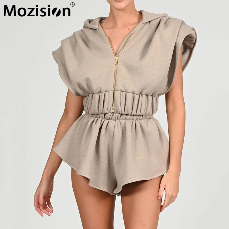 Name: Mozision-Conjunto de dos piezas para mujer, Top corto sin mangas con cremallera, pantalones cortos, conjuntos elegantes Vintage de primavera 2021